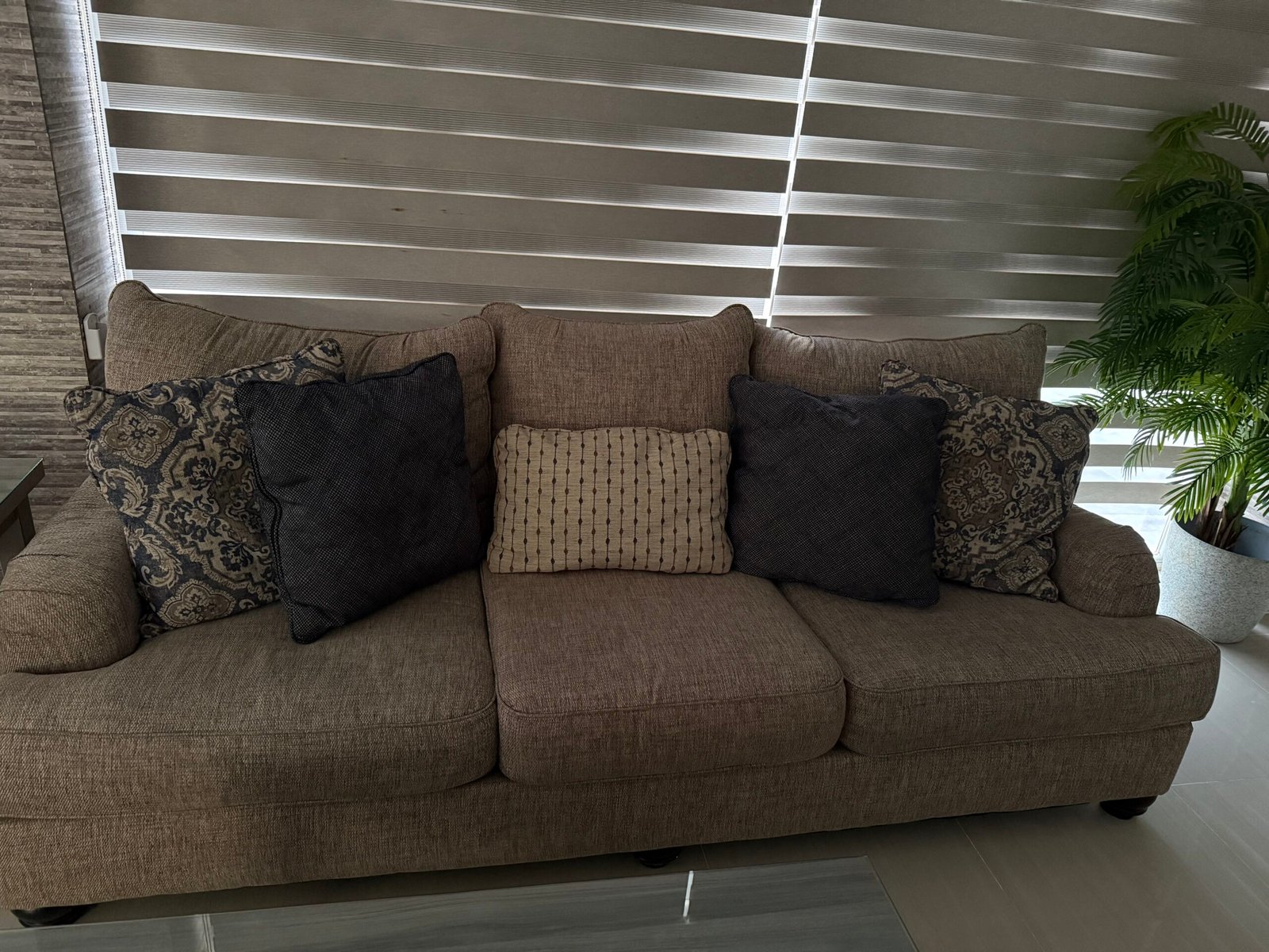 Sofá-Cama tapizado con auxiliar full y cojines decorativos
